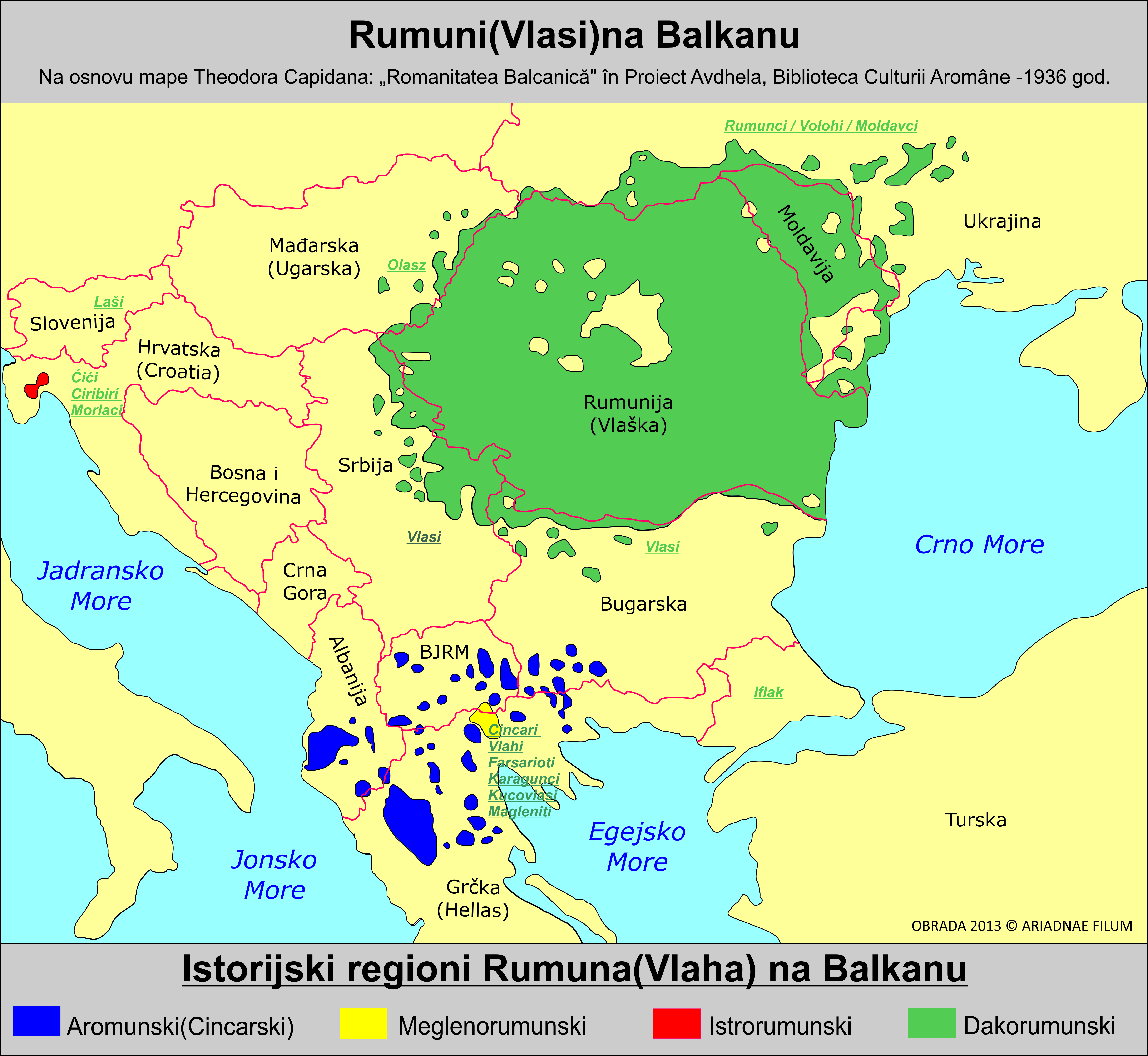 Rumunski(Vlaški) istorijski regioni - Orjentaciona karta oblasti u susednim državama sa rumunskom manjinom.